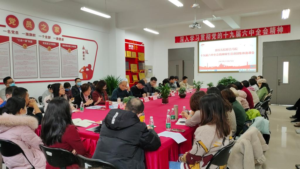 为深入学习宣传贯彻好十九届六中全会精神,11月25日,买球官方网站联合北校区五个二级学院党总支,成立十九届六中全会精神宣讲团并召开集体备课会,共同学习十九届六中全会精神,研究全会精神宣讲重点与方法,分享学习体会与认识。各二级学院党总支书记、师生党支部书记、团总支书记、团总支副书记、学生会主席等宣讲团成员,买球官方网站全体教师参加备课会。会议由地球科学学院党总支书记唐圣华主持。