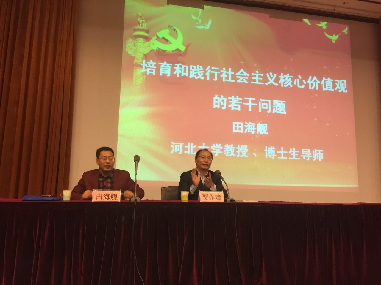 下午,田教授在图书馆报告厅就“培育和践行社会主义核心价值观的若干问题” 做了学术报告。所有思政课教师和近400名同学聆听了讲座。田教授从社会主义核心价值观的内涵外延,社会主义核心价值观的基本内容,社会主义核心价值观与社会主义核心价值体系、西方价值观、中国传统文化等的关系以及弘扬和践行社会主义核心价值观的重大意义等方面,从国际共运史、社会主义本质、价值及价值观的哲学意涵、我国意识形态建设现状和挑战、中华民族伟大复兴的丰富内涵等角度,对社会主义核心价值观做了基础性、学理性、通俗性的讲解,加深与会师生对社会主义核心价值观的认识。