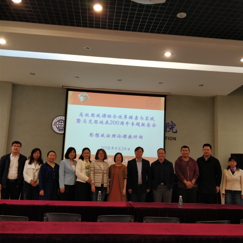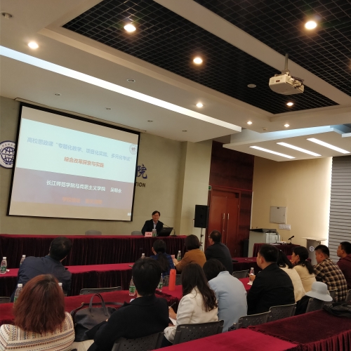 2018年4月24日,思政部邀请长江师范学院买球官方网站院长、法学博士、硕士生导师、吴明永教授为买球官网思政课专兼职教师在图书馆多功能厅做关于“高校思政课综合改革探索与实践暨马克思诞辰200周年”的专题报告。报告在总结分析当前高校思政课教学教改存在的主要问题的基础上,提出了系统、科学、综合改革的必要性及基本理念、基本思路,并具体详尽地介绍了长江师范学院思政课“专题化教学、项目化实践、多元化考试”综合改革的实施情况和良好的改革成效及社会影响。之后,吴教授还与老师们展开了“纪念马克思主义诞辰200周年”的专题研讨会,就研读马克思主义经典著作,夯实思想课教师的理论功底,做到真学真懂真信真用,是保障思政课教学质量的最关键因素等问题达到一致认识,并就如何促进老师学习马克思主义经典著作、坚定马克思主义立场观点方法、提高马克思主义理论素养提出具体建议。吴教授的讲座对买球官网思政课教师解放思想、转换理念、加强学习,进一步推进思政课教学教改,提升教学质量启发很大。