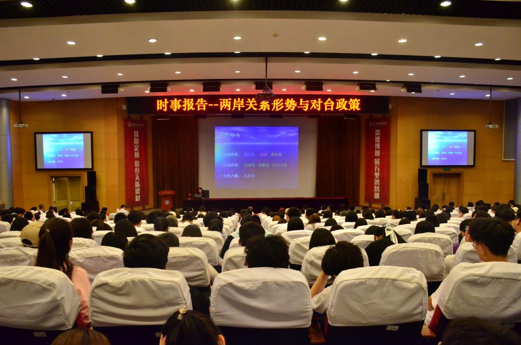 根据教育部办公厅关于印发《高校“形势与政策”课教学要点(2021年上辑)》的通知(教社科厅函〔2021〕10号)和本学期“形势与政策”课的教学计划、“师生同上一堂形势与政策思政大课”的相关安排,5月28日买球官方网站邀请中国现代国际关系研究院涉台研究中心主任研究员、国务院台湾事务办公室海峡两岸关系研究中心特约研究员、厦门大学台湾研究院博士生导师谢郁来校做题为“两岸关系形势与对台政策”专场形势与政策报告会。报告会在图书馆报告厅举行,买球官方网站全体教师与“形势与政策”课的教学班级学生代表参加,其他教学班的同学采用线上观看直播的方式参加。